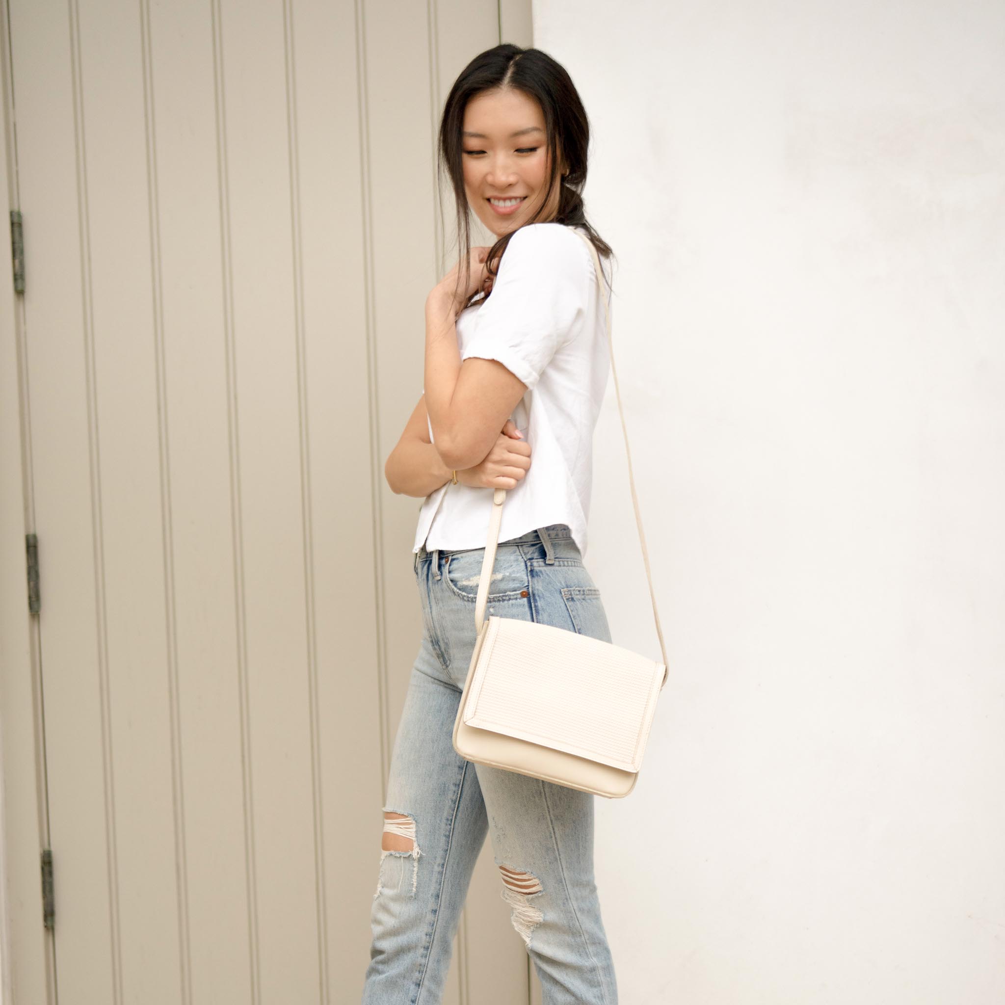 Structured and minimal, our Clara Crossbody is sized perfectly and made to go with everything. Designed with an exterior pocket so you stay organized and ready to go.